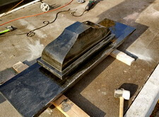 Начинается процесс монтажа. Доставляем памятники, крепим их, приклеиваем и насаживаем на штыри все конструктивные элементы надгробий.